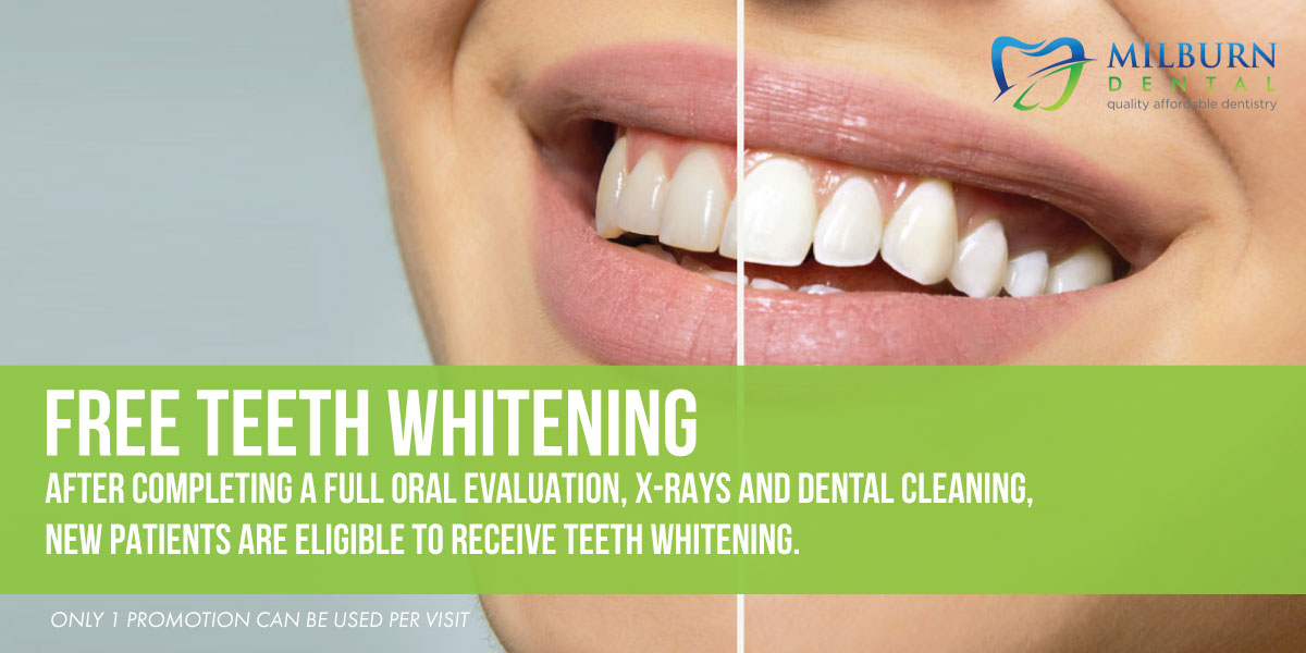 After completing a full oral evaluation, X-rays and dental cleaning, new patients are eligible to receive teeth whitening!